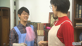 書斎で、いろはがハタキをかけていると、 文之介とかるたが入ってくる。 文之介「だから、いろは叔母さんだめだって!」 いろは「だってさぁ、せっかくのお休みなんだから」 かるた「勤労感謝の日なんだから…座ってて!」 いろは「じゃあ今日は、ずぼらになっちゃおうかな?」