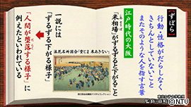 「ずぼら」とは、 行動・性格がだらしなく、きちんとしていないこと。 また、そのような人を指す言葉。 江戸時代の大阪で、 「米相場(こめそうば)」がずるずると下がることを 「ずぼら」と呼んでいました。 一説には、このずるずる下がる様子を 「人間が堕落する様子」に例えたといわれています。