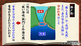 「瀬戸際」とは、「勝ち負け」や「成功・失敗」、 また「身の安全・危険」の分かれ目のこと。 一説には「狭い海峡〈狭門(せと)〉と、外海の境」を指し、 そこから「重要な分岐点、成否の分かれ目」の意味が 生まれたといわれています。 幕末期に刊行された 日本初の外国人向け日本語辞典(『和英語林集成』)にも、 「Setogiwa セトギハ 狭門際」と載っています。