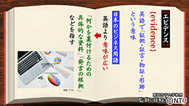 「エビデンス」とは、英語で「証拠・証言・物証・形跡」という意味。 |