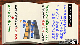 「アイドルタイム」とは、「交通機関や店などがすいている時間帯」、また「工場などで一部の機能・設備が稼働していない時間」のこと。 |
