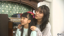 書斎で、ことはと、かるたが、雛人形を並べていると、