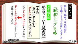 「2位以下を圧倒的に引き離してトップの座にあること」を俗に「ダントツ」といいます。 |
