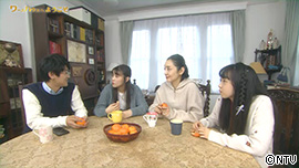 家族4人で団らんしている。