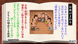 人が多いと、自分のもとになかなかまわってこない。そんなニュアンスを込めて「順番がまわってくる」ことを「お鉢がまわる」と言います。 |