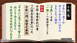 千年に一度しかめぐり合えないほどの、またとない機会を「千載一遇」と言います。 |