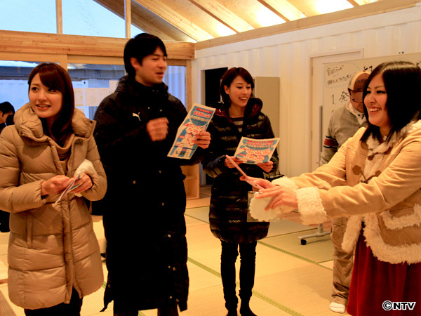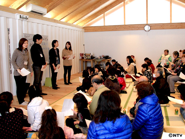 2月4日、「よみひと知らず」の活動として私は、鈴江奈々アナ・小熊美香アナ・浜本徳子アナ(ミヤギテレビ)と4人で宮城県女川町を訪れました。女川町は津波で甚大な被害を受けた地区の1つ。いまだ仮設住宅での生活を余儀なくされている多くの町民の皆さんへ、この一年間なかなか無かったという「声を出しながら皆でコミュニケーションをとる機会」を提供できれば、という目的でお邪魔しました。