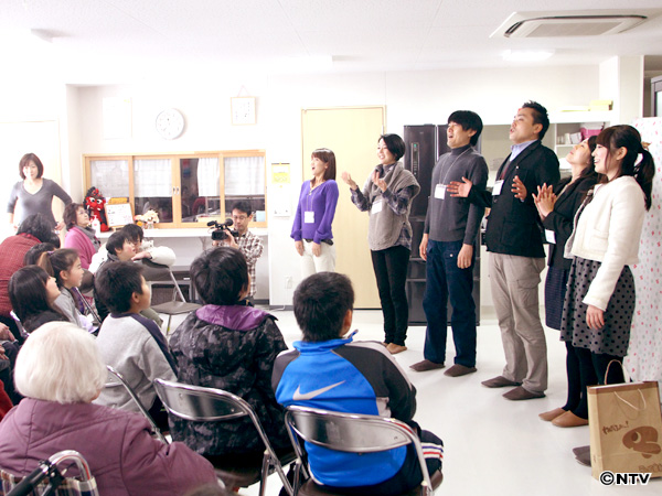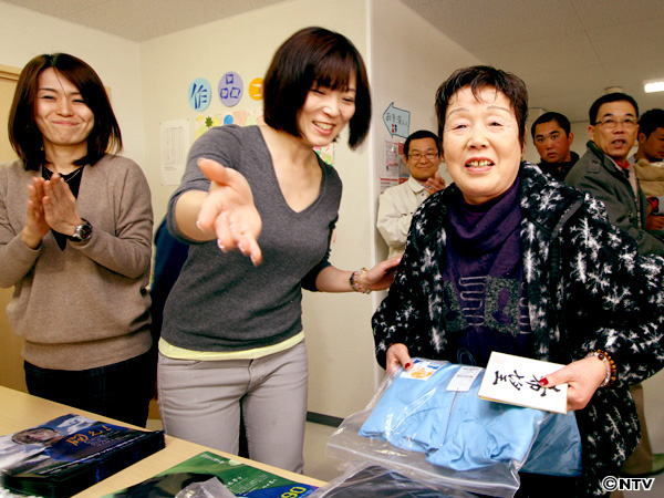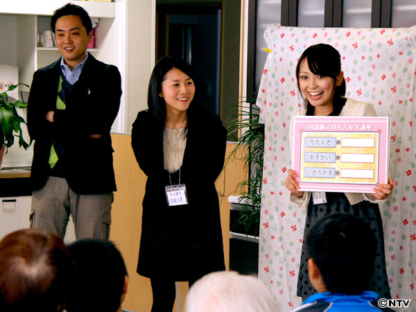 会場は仮設住宅の集会所。お年寄りやお子さんを中心に60人近くの方が集まり、発声練習や箱の中身を当てる「これなぁに」クイズなどを実施。中でも盛り上がったのは、地元局アナが釜石の方言を出題、地元の方からヒントをもらって日テレアナが答える「方言クイズ」。事前に「岩手はシャイな人が多い」と聞いていましたが、特にお年寄りたちが勢いよく手を挙げてもらい、良い意味で予想を裏切られました。