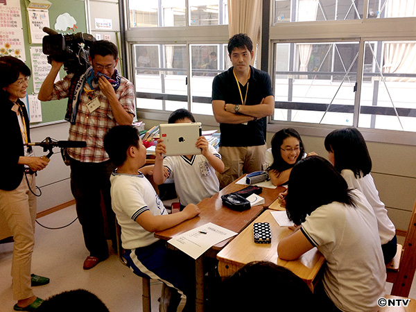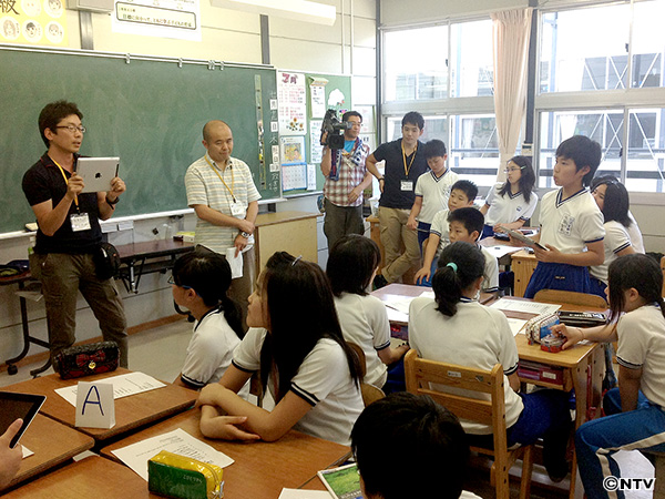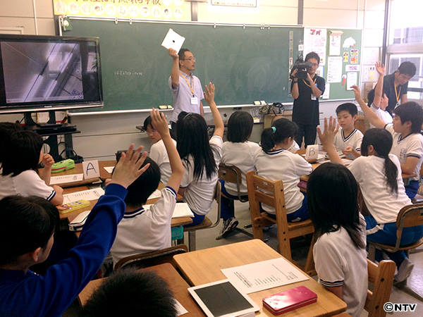 このプロジェクト、あくまでも主役は子供達。撮影、リポートするのはもちろん、子供達が行います。今回は、カメラマン、ディレクター、プロデューサーやアナウンサーなどが小学校を訪れ、撮影の仕方やリポートの仕方を教える特別授業を行いました。