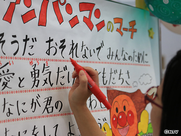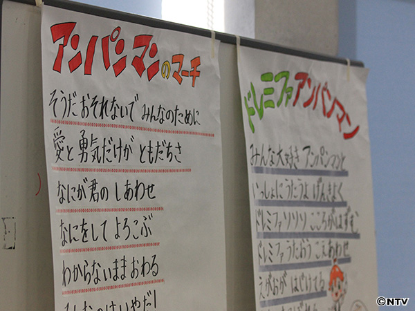 いつもは日々のニュースに奔走しているスタッフが、模造紙に歌詞とイラストを手書き。参加者全員、体操を練習して臨みました。