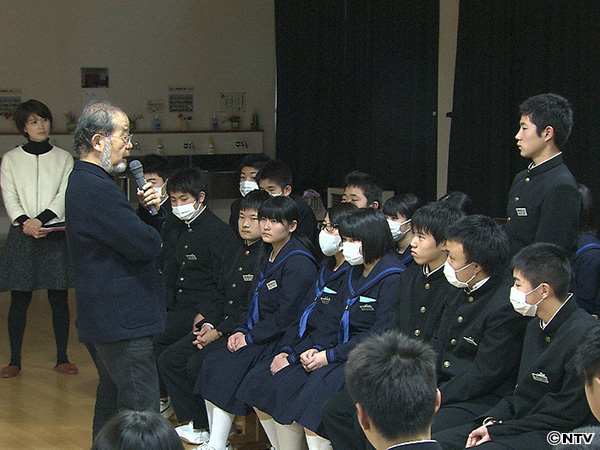 実は鎌田医師は、中学1年の国語の教科書に掲載されている「雪とパイナップル」という物語を書いています。チェルノブイリの事故で被爆した少年の話で、飯舘中学校の生徒たちはみんなこの話について勉強したことがあります。そんなつながりがあってか、生徒たちは鎌田医師の話に非常に関心を持ち、積極的に質問を投げかけました。