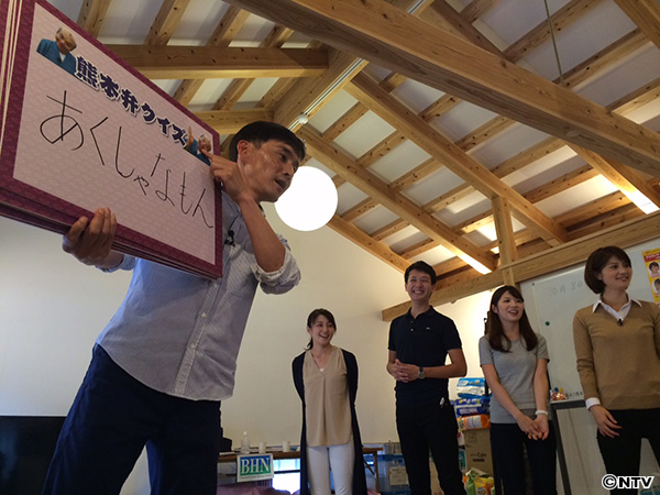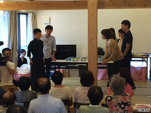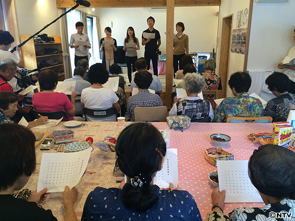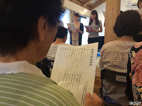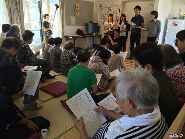 2日間にわたり、被害の大きかった益城町と南阿蘇村の人たちが避難する大津町にある仮設団地2カ所を訪れ、日本テレビと熊本県民テレビのアナウンサーによる「日本語ワークショップ」、フィットネスクラブ「ティップネス」のトレーナーによる「健康体操」を行いました。仮設での生活も数ヶ月が経ち、被災者のみなさんに“心と体の健康”を届ける「よみひと知らず」です。