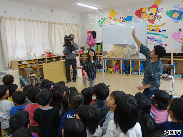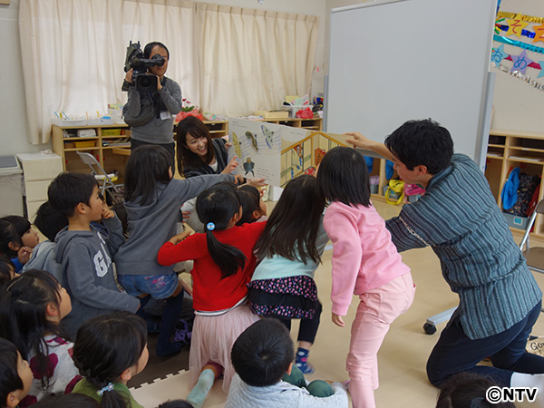 今回は日本テレビと南海放送のアナウンサー、そしてnews every.の中継で何度も愛媛に足を運んでいる“愛媛大好き”渡辺裕太さんも共に仮設の野村保育所を訪ねました。