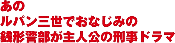 あの ルパン三世でおなじみの 銭形警部が主人公の刑事ドラマ 銭形警部と言えば……そう、 『ルパン三世』に登場する、誰もが知る刑事。 神出鬼没の大泥棒・ルパン三世逮捕に 執念を燃やすその姿は老若男女に幅広く知られている。 だが、彼の真の姿を知る者は少ないのではないだろうか。 「いつもルパンに逃げられているドジな刑事」 そういう印象を持ってはいないだろうか。 それは事実ではない。 頑固一徹で、悪を決して許さない。 そして、 誰よりも人情味にあふれる優秀な刑事なのである。 このドラマは、そんな銭形にスポットライトを当て、 様々な難事件を解決していく様を描くものである。