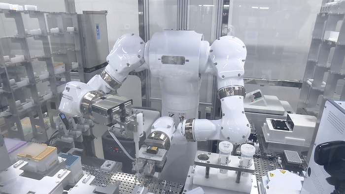 「この部屋でロボットが遺伝子を抽出する前処理という行程を行っています」