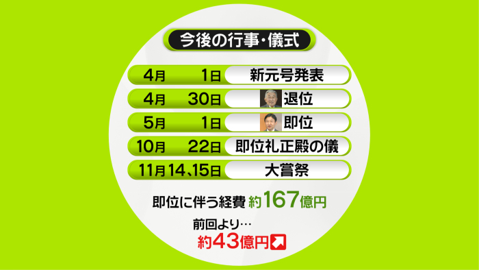 即位に伴う経費はおよそ167億円で