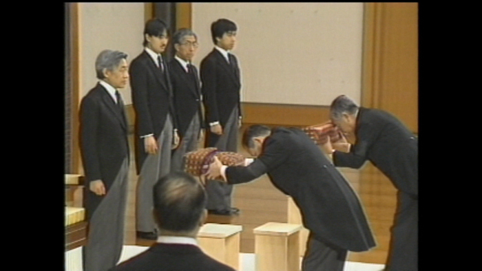 皇位の印とされる三種の神器などを受け継がれました。