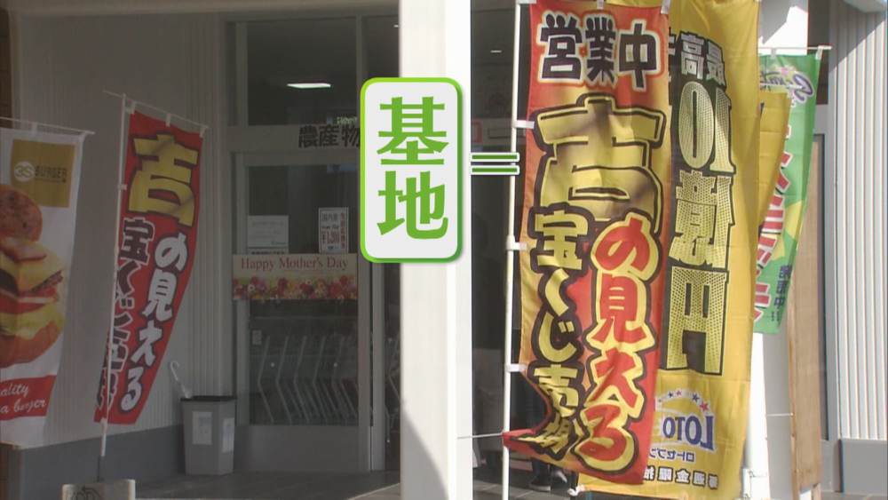 「“吉”の見える」と、「基地」と「吉」をかけた宝くじ売り場まで。
