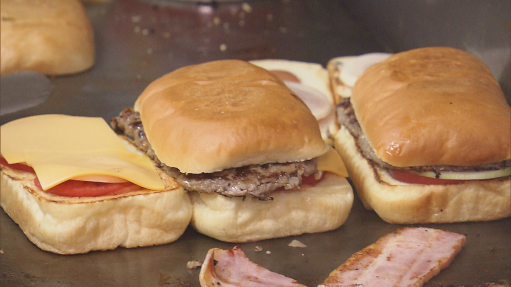 「アメリカの味や文化を広めたい」と作ったジャンボチーズバーガーです。