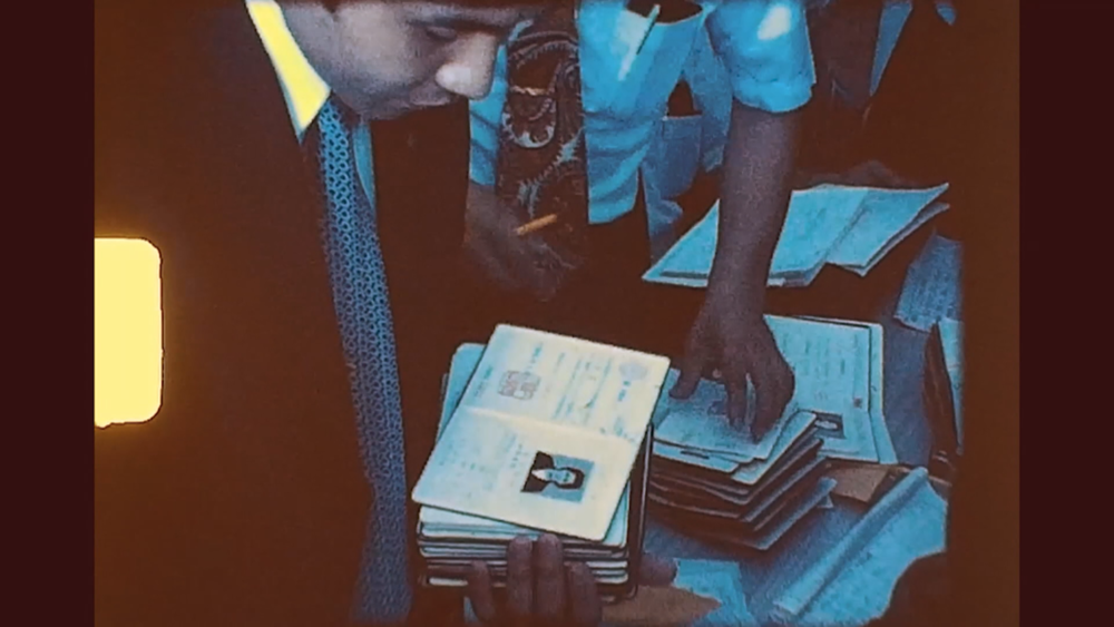 本土行きの船に乗る人たちの手には日本渡航証明書や身分証明書と書かれたパスポートが。