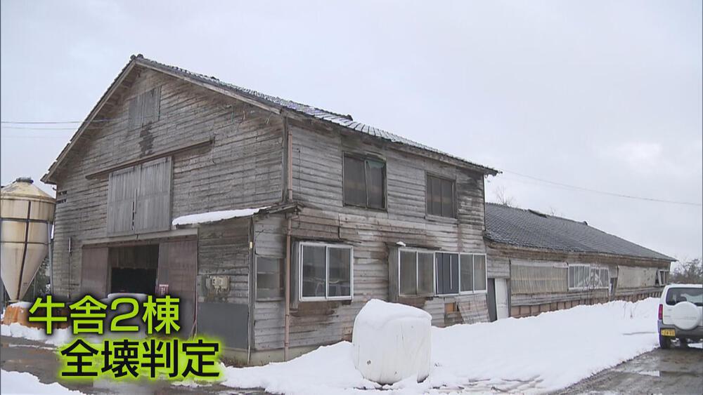 牛舎4棟のうち2棟が全壊判定。