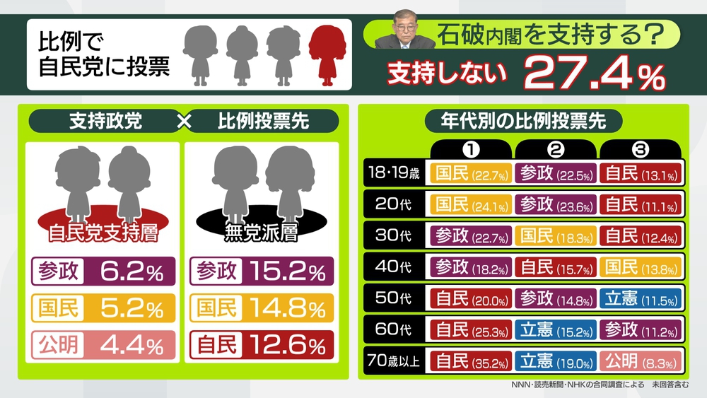 いわゆる無党派層の投票先をみていきます。