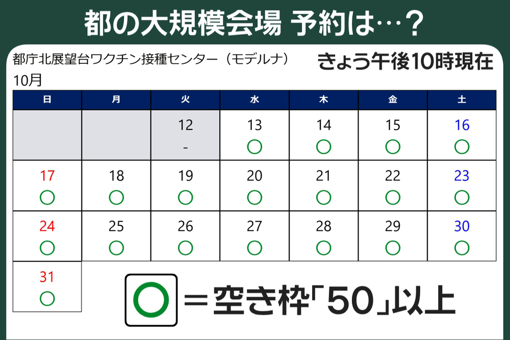 「都庁北展望室ワクチン接種センター」の11日午後10時時点の予約状況ですが、