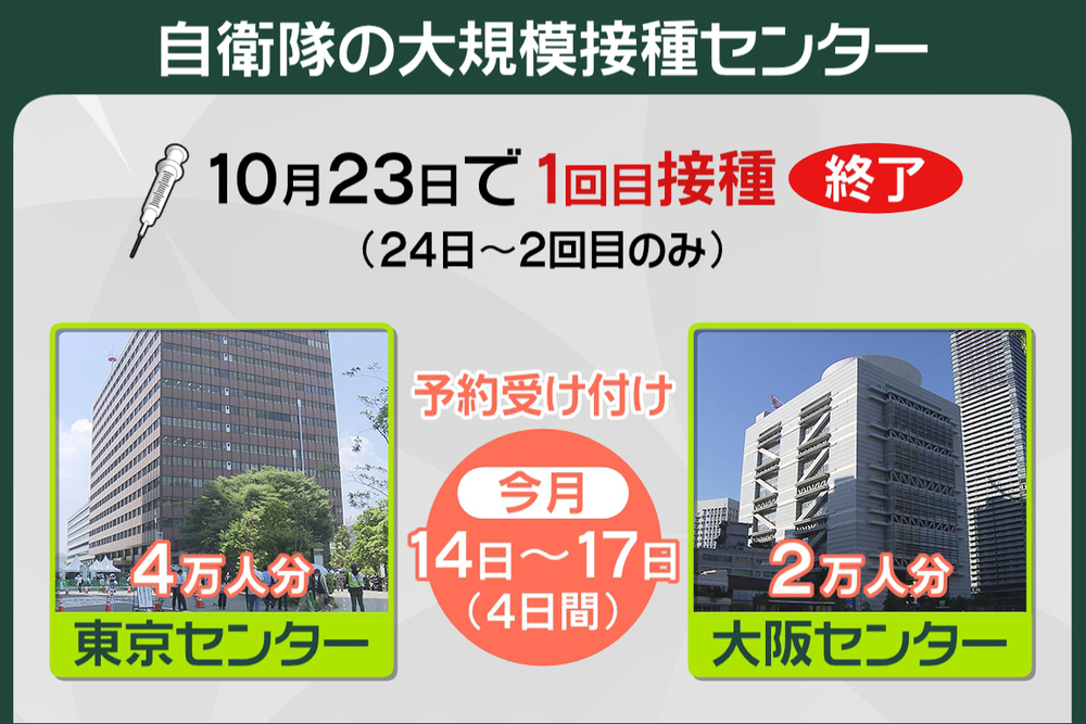 まずは、東京と大阪に設置されている自衛隊が運営する大規模接種センター。