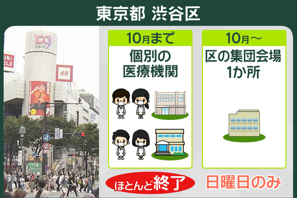 そして渋谷区は、10月いっぱいで個別の医療機関での接種がほとんど終了。