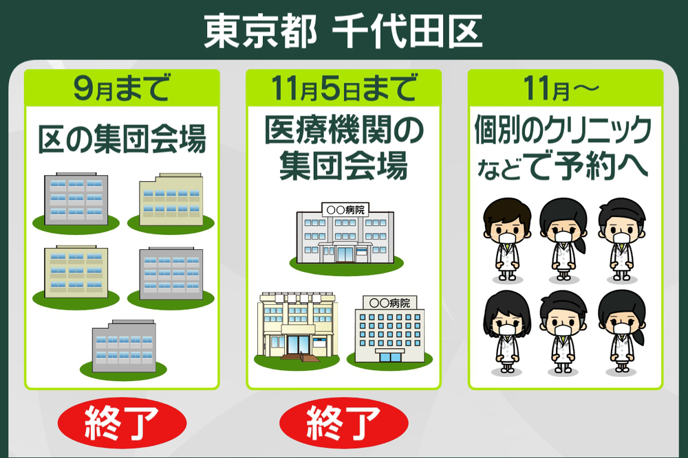 千代田区では、最大5か所あった区の集団接種会場が9月までですべて終了。