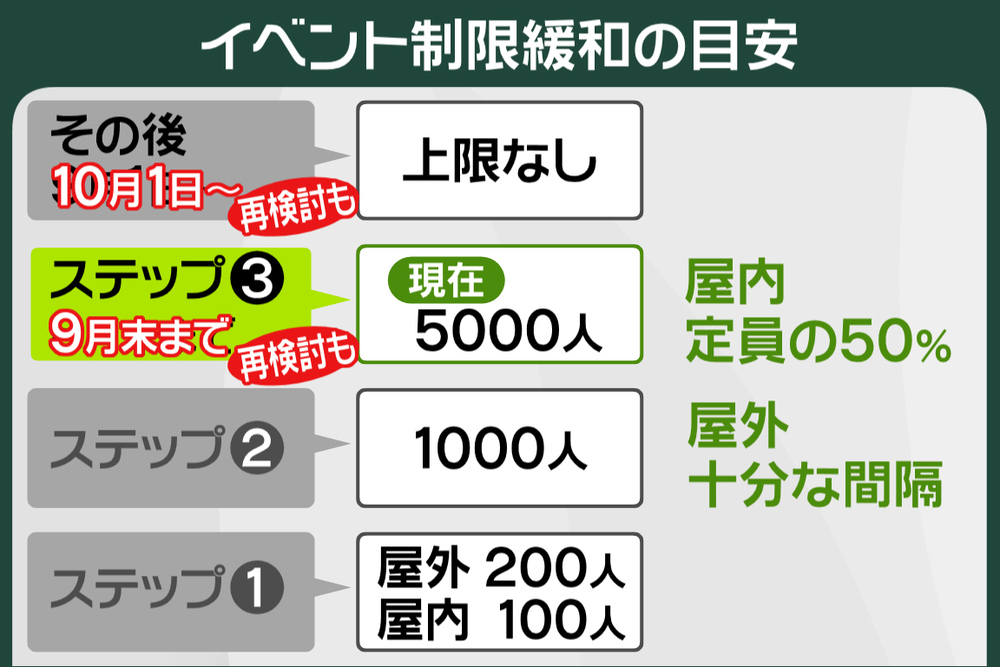 5月に示された政府の基本的対処方針ではイベントの開催制限について、