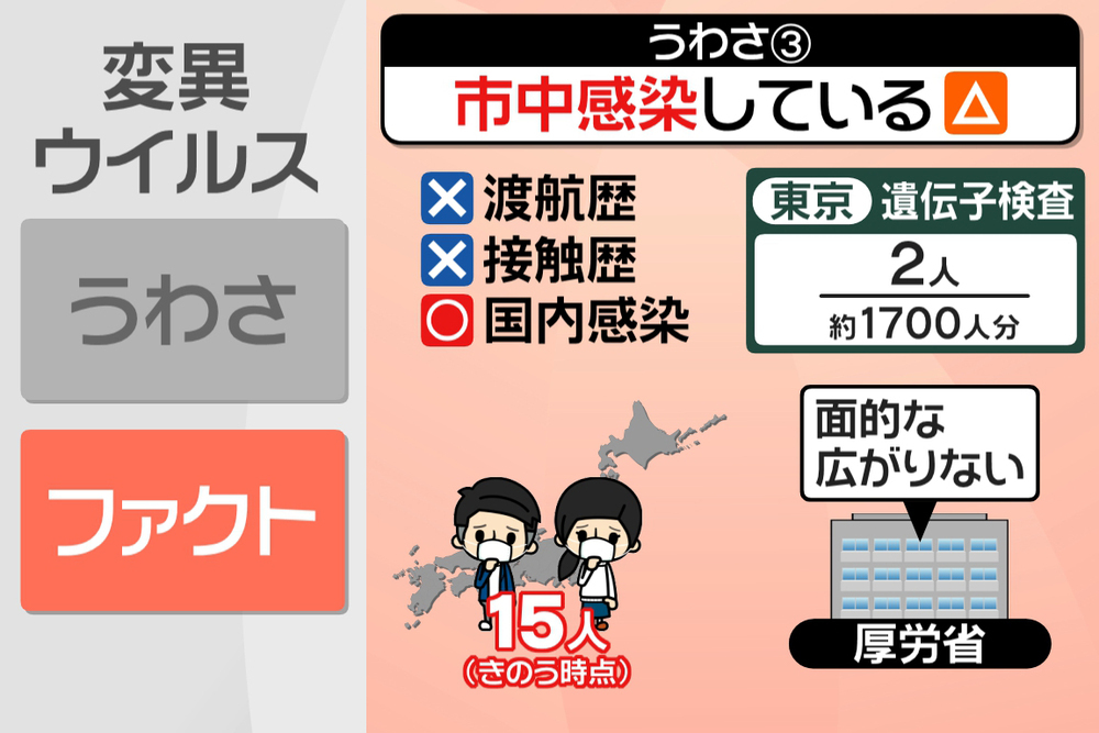 一方で、厚生労働省は市中感染に「面的な広がりはない」としています。