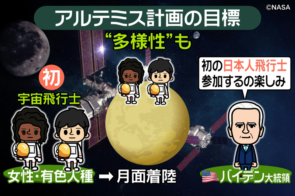 「最初の女性と最初の白人以外の飛行士」を月面に送り込むことも目標の1つ。