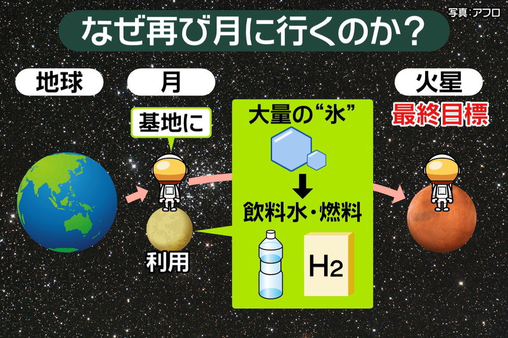 実は、近年になって月には大量の「氷」があることがわかってきたので、