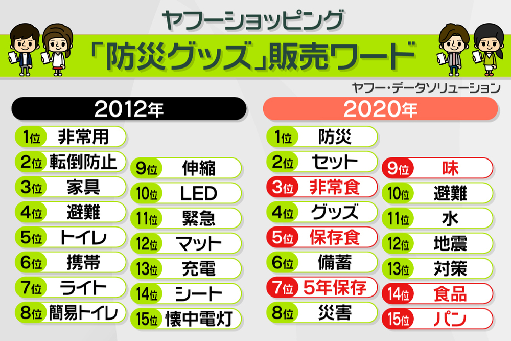 基本的な防災グッズが多いんですが、それが、2020年になると一気に変わるんです。