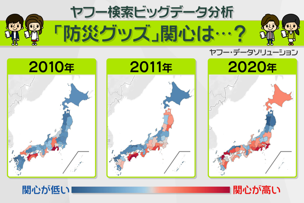 震災があった2011年には東北地方など太平洋側全体で関心が強くなりました。