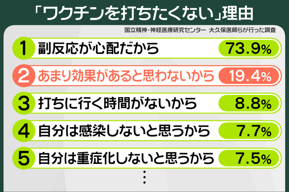 「ワクチンを打ちたくない」と答えた人の割合です。