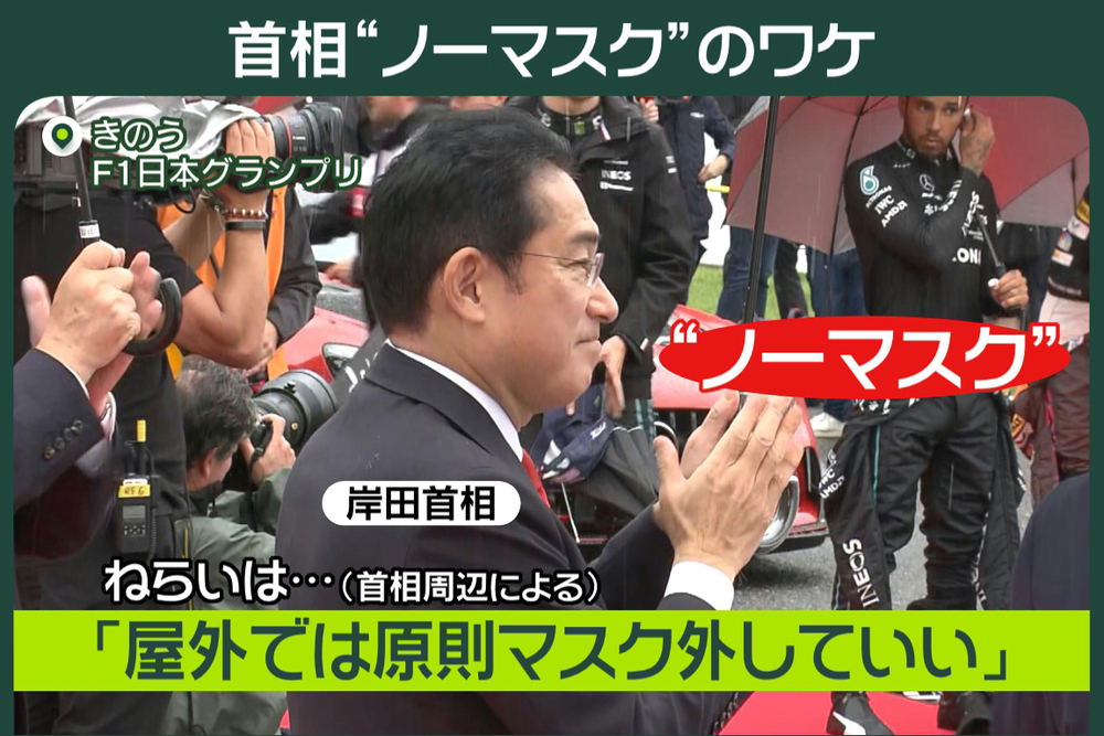 その岸田首相、10月9日の「F1日本グランプリ」をノーマスク姿で観戦しました。