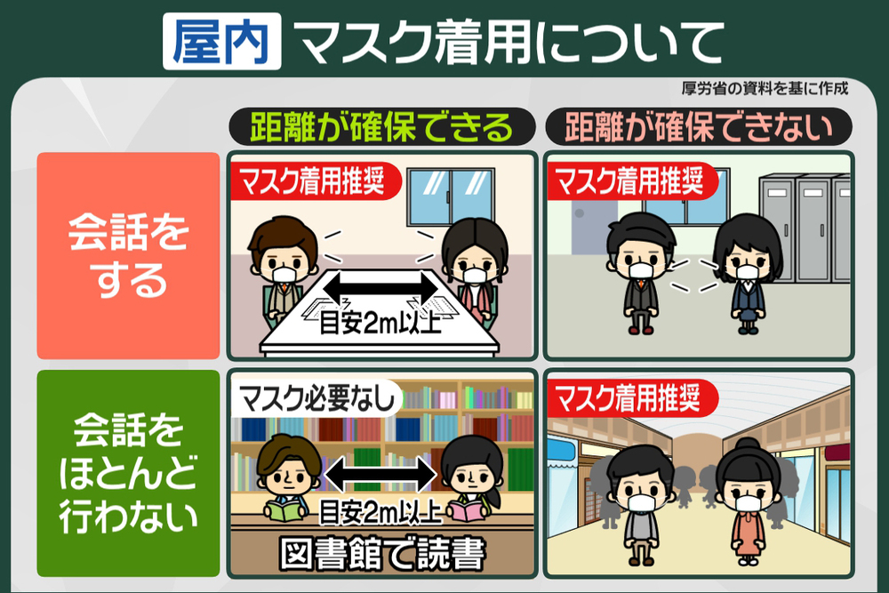 距離を確保して会話しないケースを除いて「マスク着用を推奨」しています。