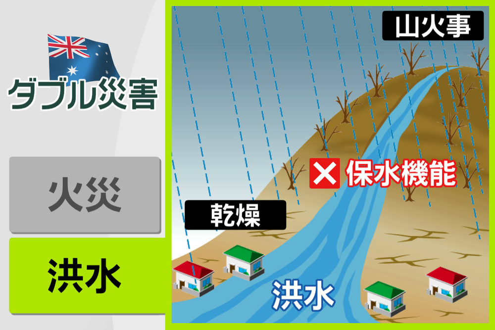さらに山火事で植物が燃えてしまったところへ、大雨が降れば…