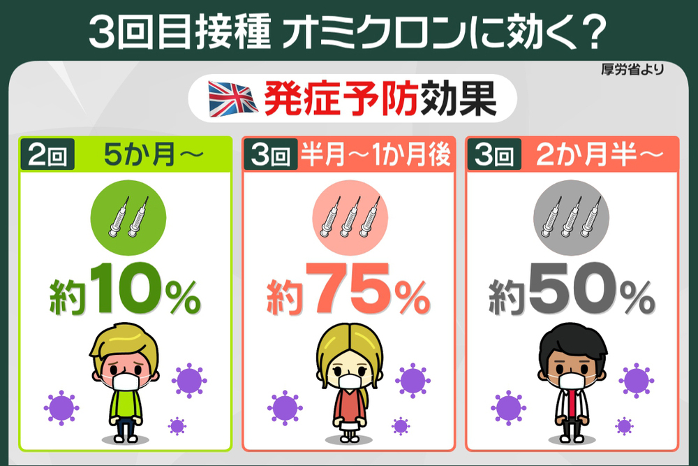 オミクロン株に対して発症予防効果はおよそ10%に
