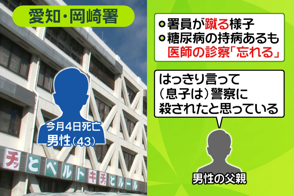 署員が男性を蹴る様子がカメラに映っていたり、