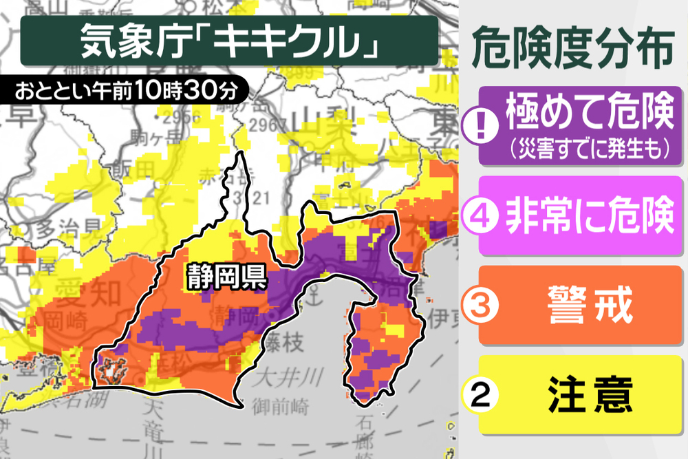 気象庁では、この濃い紫になる前の、「うすい紫」=「非常に危険」の段階で