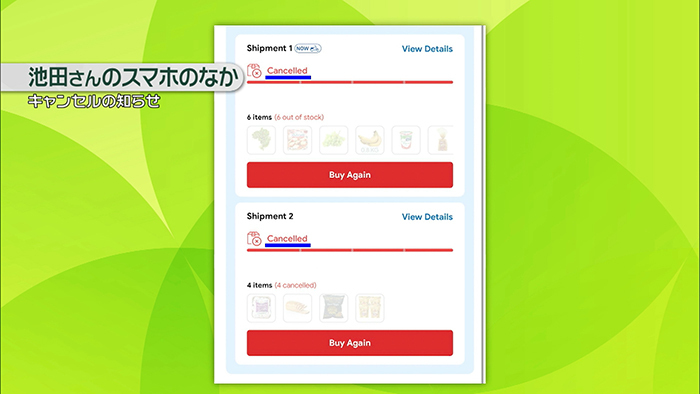 池田さんが頼んだ食料品も理由もなくキャンセルされたといいます。
