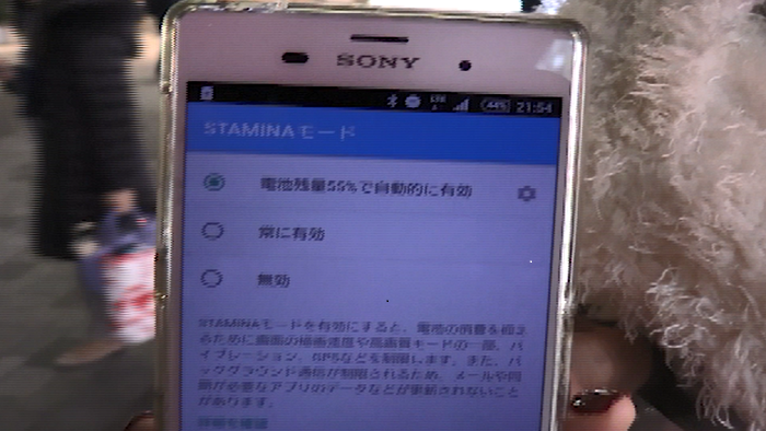 55%以下の充電になると省エネモードに切り替わる設定です」