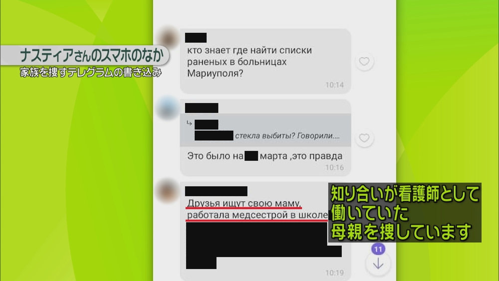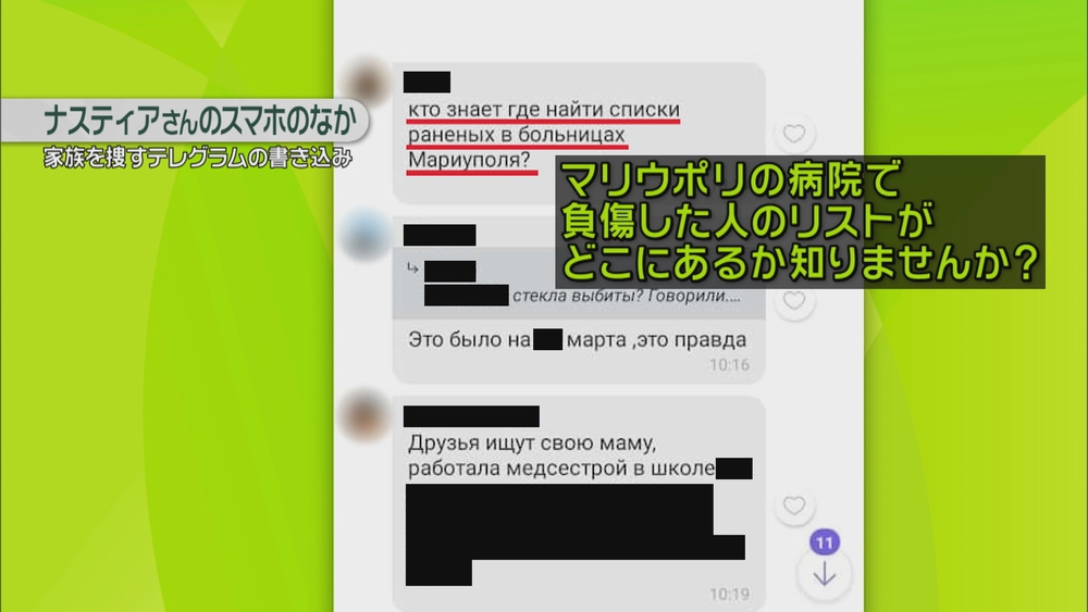 見せてくれたのは離れ離れになった家族を探すテレグラムの書き込み。