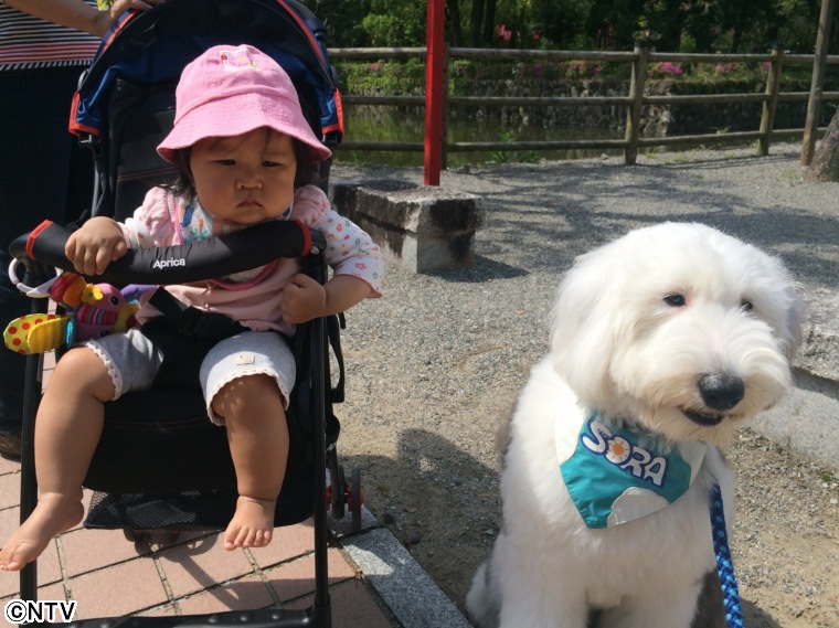 高知城の近くでうばぐるまに乗った女の子に遭遇! 名前はそらとそっくりの「さら」ちゃん! そらに興味をもってくれて、可愛くてすごく癒されました。