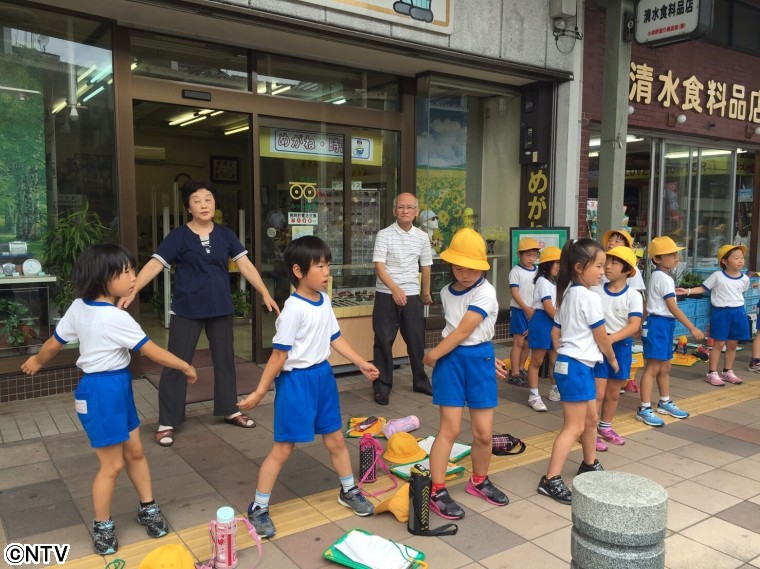 ふれあっていると突然、商店街からラジオ体操が流れだし、お店の人が外に出てきて、体操を始めました。 ビックリしましたが、みんなで朝から体操をするなんてステキ! 体操の後は町探検に参加させてもらいました。