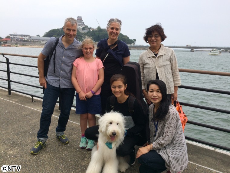 唐津市にある唐津城の付近を散策していると、日本を観光中のスイスから来たご家族に出会いました。