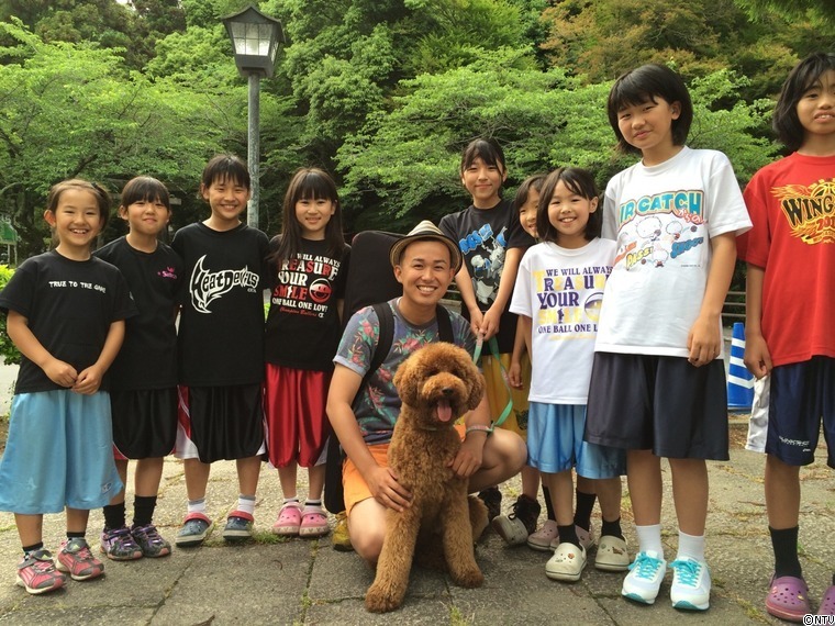 バスケットを頑張る小学生のみんな キャラバンを見てくれているそうです!